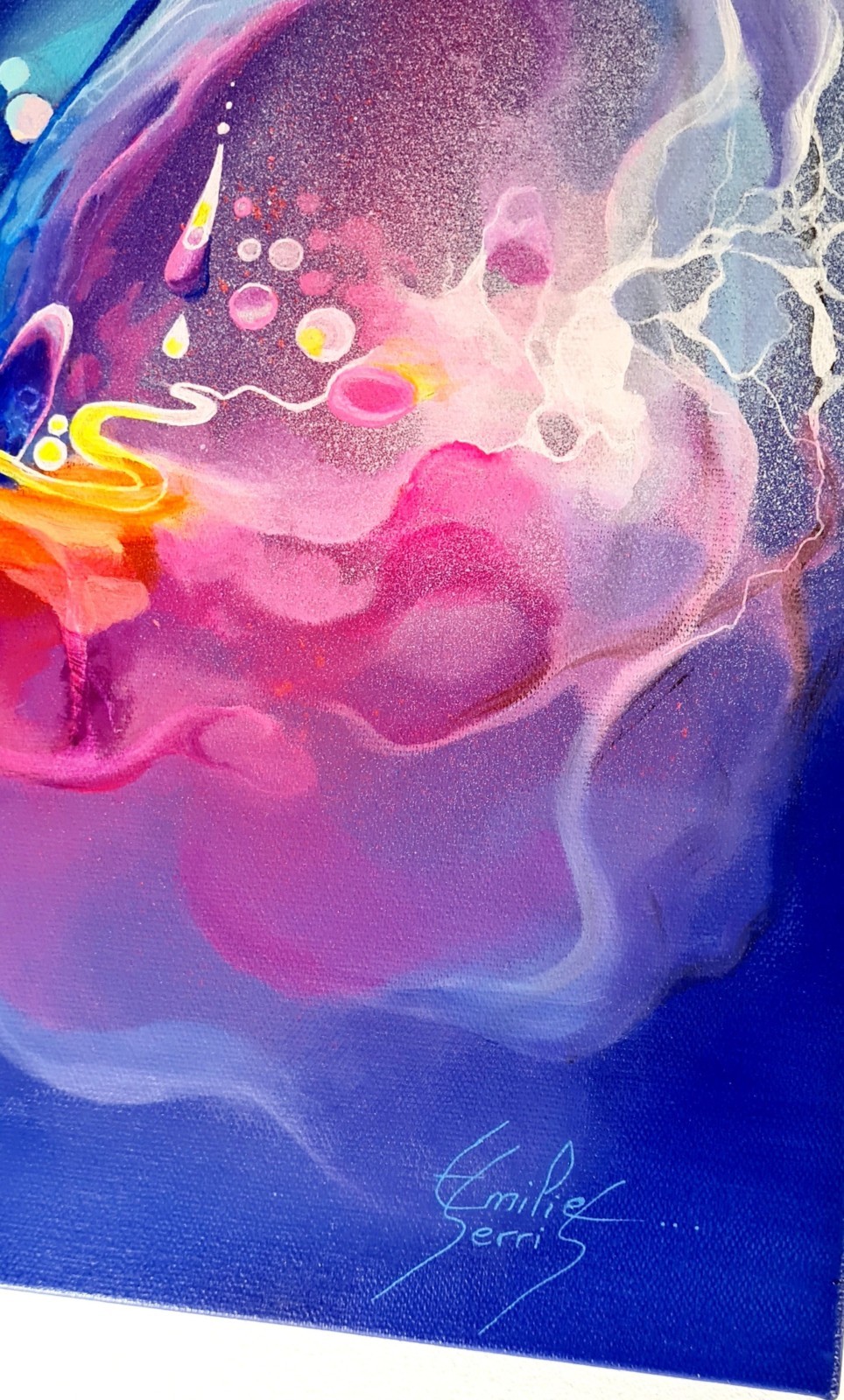 Oeuvre unique et originale de EMILIE SERRIS. Acrylique et spray sur toile. Format : 73 x 54 cm Signée.Contresignée et titrée au dos. Livrée avec certificat d'authenticité.