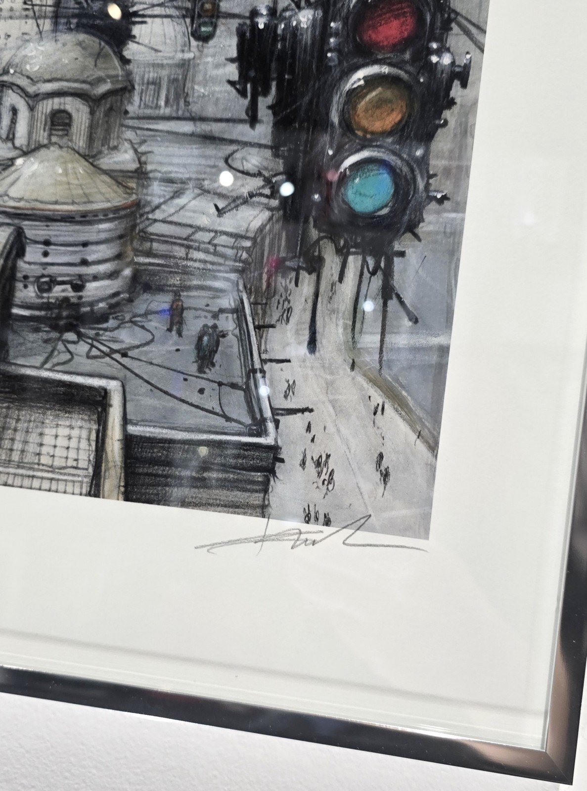 Encadrement en Aluminium Argenté et Sous verre.