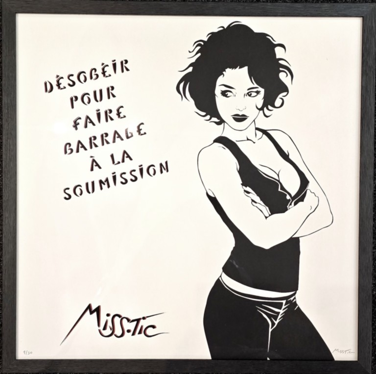 L'exposition met en lumière l'évolution de son travail, de ses interventions sauvages dans les rues de Paris à ses œuvres sur toile et autres supports. Elle dévoile comment Miss.Tic a su infuser l'éphémère et l'urgence de l'art urbain dans une œuvre d'une étonnante permanence, faisant d'elle une observatrice incontournable de notre époque.
