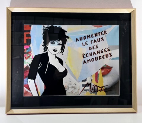Encadrement bois + Marie-Louise Noire et sous verre.